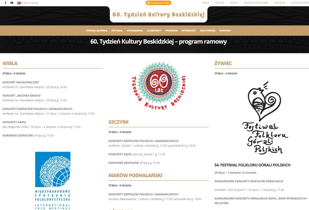 Ramowy program 60. Tygodnia Kultury Beskidzkiej https://tkb.art.pl/60-tydzien-kultury-beskidzkiej-program-ramowy/