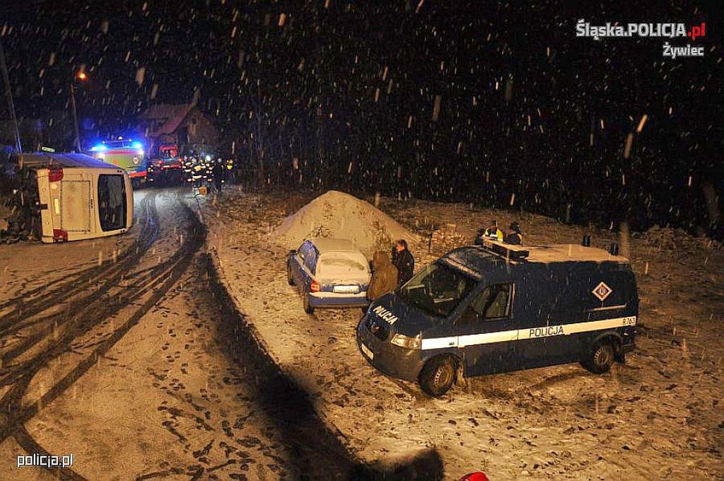 Jak wynika ze wstępnych ustaleń funkcjonariuszy, kierujący autobusem 29-letni mieszkaniec powiatu wadowickiego, na śliskiej nawierzchni drogi stracił panowanie nad pojazdem przewracając go na bok. Autokarem podróżowało 29 osób, głównie mieszkańców powiatu wadowickiego, którzy wracali z Węgier. W wyniku zdarzenia 11 z nich z obrażeniami ciała trafiło do szpitali w Żywcu i Bielsku-Białej.