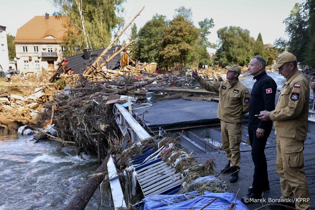 – Fala powodziowa pozostawiła ogromne zniszczenia: wielotonowe zwały gruzu, zgliszcza mułu, szlamu, strat w mieniu, które w zasadzie mogą być usunięte tylko przy użyciu ciężkiego sprzętu. Niemal połowa mieszkańców gminy odcięta jest od bieżącej wody, od prądu. Usunięcie tych strat spowodowanych przez powódź jest tu w zasadzie niemożliwe tylko z wykorzystaniem lekkich środków, jakimi dysponują Wojska Obrony Terytorialnej czy Ochotnicze Straże Pożarne – mówił Szef BBN.