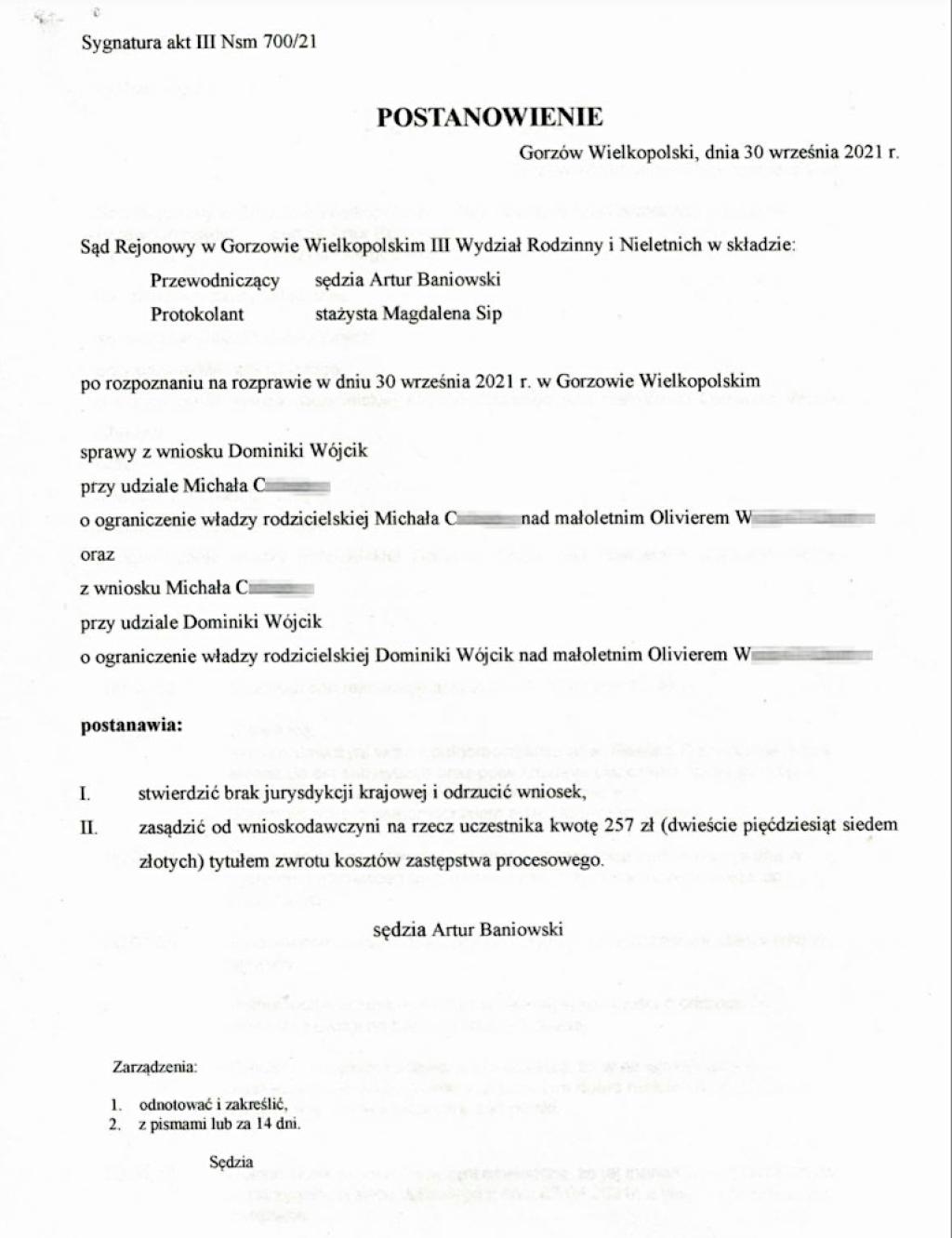 Dominika Wójcik prosiła gorzowski sąd, by odsunął ojca-narkomana od dziecka. Ale ten uznał, że jurysdykcja jest w Danii! Czyli zupełnie odwrotnie niż ostatnio sąd w oddalonym o ledwie 170 km Głogowie!