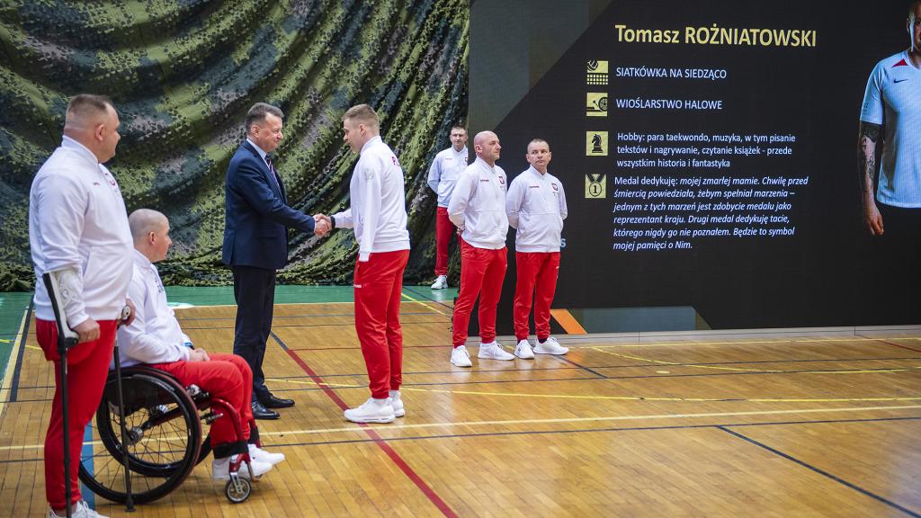 - Dziękuję Wam właśnie za taką postawę, że nie odkładacie na półkę swoich ambicji, że staracie się, aby rehabilitacja przebiegała w sposób jak najlepszy, że macie siłę i wolę do tego, żeby reprezentować naszą Ojczyznę podczas zawodów. Oczywiście dziękuję też za Waszą służbę. Wszyscy widzimy jak ważna jest służba żołnierzy, jak jest to ważne dla bezpieczeństwa. Wiemy, co dzieje się za naszą wschodnią granicą, Ukraina została napadnięta przez Rosję. Wszyscy widzimy, że cały naród ukraiński stanął do walki, ale nikt z nas nie ma złudzeń, że gdyby nie ofiarna postawa żołnierzy ukraińskich, to ta inwazja rosyjska przebiegałaby w zupełnie inny sposób. Wiemy, zatem doskonale, że trzonem obrony każdego państwa, także naszej Ojczyzny – Polski, jest Wojsko Polskie – powiedział szef MON.