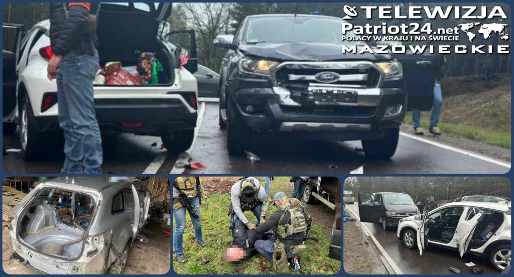 Rankiem 3 kwietnia policjanci z grupy "Orzeł" przy wsparciu kolegów z "samochodówki" KRP Warszawa VII, SPKP w Warszawie oraz Wydziału Zabezpieczenia Działań Nadwiślańskiego Oddziału Straży Granicznej, WRD KSP KPP Otwock po krótkim pościgu zatrzymali na gorącym uczynku przestępstwa trzech mieszkańców pow. wołomińskiego. To mężczyźni w wieku od 29 do 39 lat, wielokrotnie notowani wcześniej za kradzieże aut. Podejrzani podczas popełnianych przestępstw zakładali na twarz silikonowe maski. W czasie akcji policjanci zabezpieczyli skradzioną przez nich wcześniej toyotę o wartości 100 tys. zł, w którym były założone już podrobione tablice rejestracyjne. Widać było, że sprawcy zdążyli już sprawdzić i "wyczyścić" pojazd m.in z urządzeń lokalizacyjnych. W ich "roboczym" pojeździe kryminalni znaleźli przedmioty, wykorzystywane do rabunków pojazdów, w tym m.in. załączone zagłuszarki sygnału GPS, code grabber, a także urządzenie do wyszukiwania lokalizatorów GPS i inny specjalistyczny sprzęt, służący do awaryjnego uruchomienia pojazdów poprzez podłączenie do systemów samochodowych.